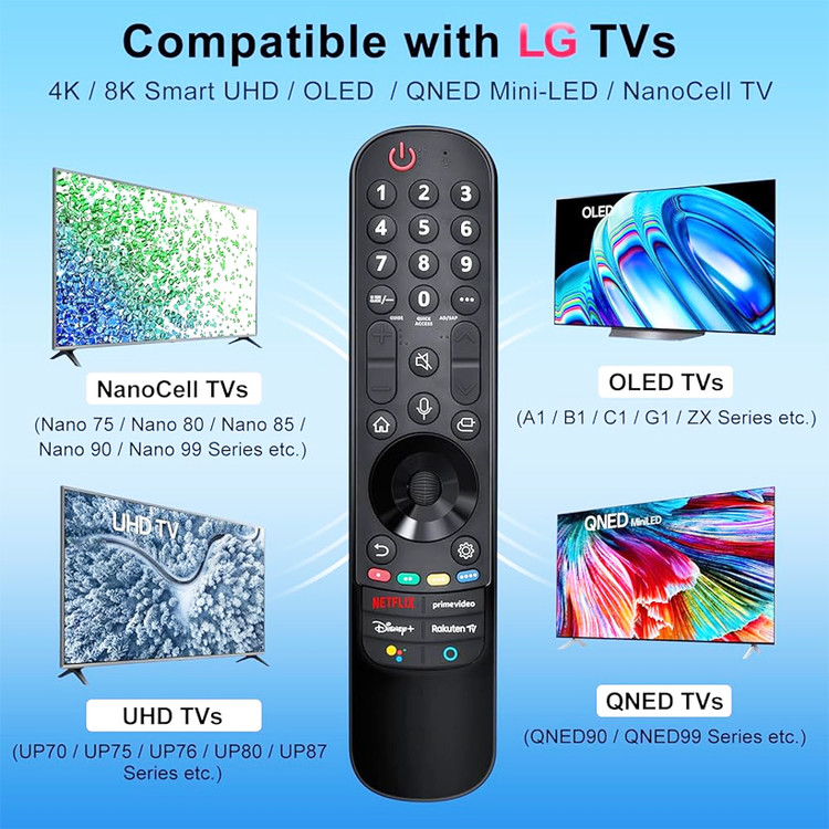 این مدل ریموت کنترل فقط با تلویزیون های ال جی هوشمند که سال ساخت آنها 2021 است سازگار است سال ساخت تلویزیون خود را میتوانید از برچسب پشت تلویزیون یا کنترل اصلی خود مشاهده کنید